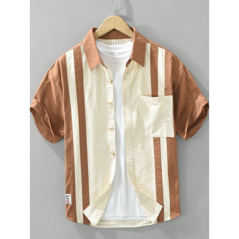 Summer 2025 New Japan fashion Navy Style Short sleeve Shirts Men's Hong Kong Style Fashion Brand Cargo Patchwork Casual Shirt