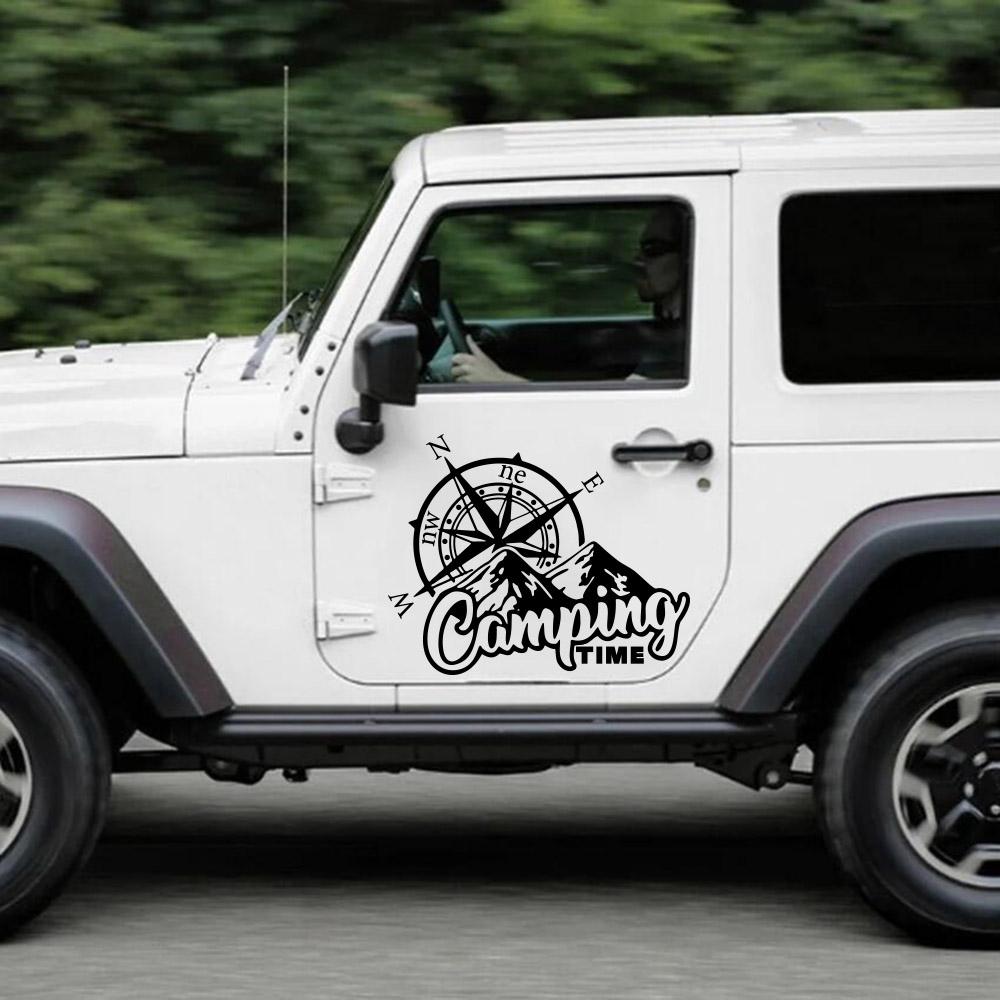 Время кемпинга Компас Караван Внедорожный автомобиль Стикеры Горный пейзаж Путешествия Приключения Кемпер Rv Наклейка Виниловая наклейка