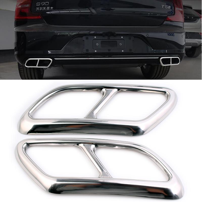 Задний двойной глушитель автомобиля, наклейка на конец трубы, накладка для Volvo 2016-S90 V90 S60, стальной хромированный глушитель, аксессуары