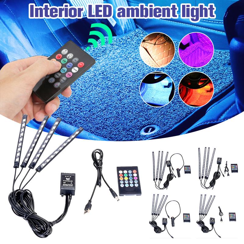 Один комплект(4 шт. световая трубка) Светодиодная подсветка салона автомобиля, USB-подсветка, управление музыкой, RGB-вечеринка, автоматическая декоративная атмосфера