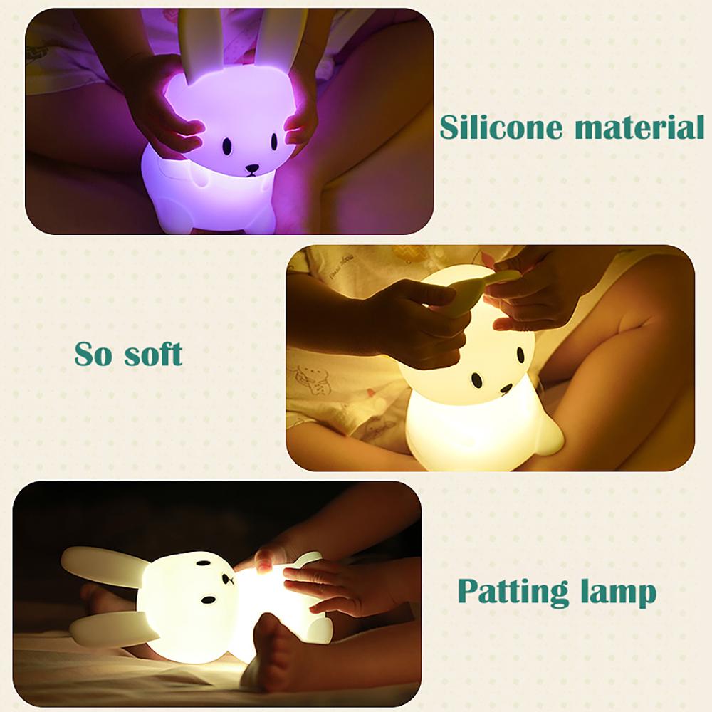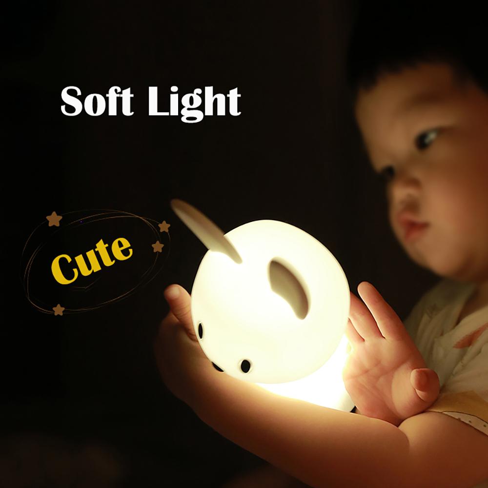 Светодиодный ночник с мультяшным кроликом, силиконовая лампа с зарядкой через USB, многоцветный окружающий свет, украшение дома для детского праздника