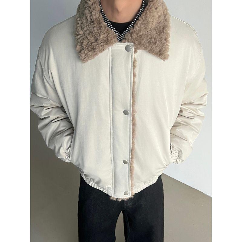 Blaexit Barn Style Fur Collar Thickened Warm Cotton Jacket Winter Clothing Men's Coat Fleece-Lined Short Cotton Jacket