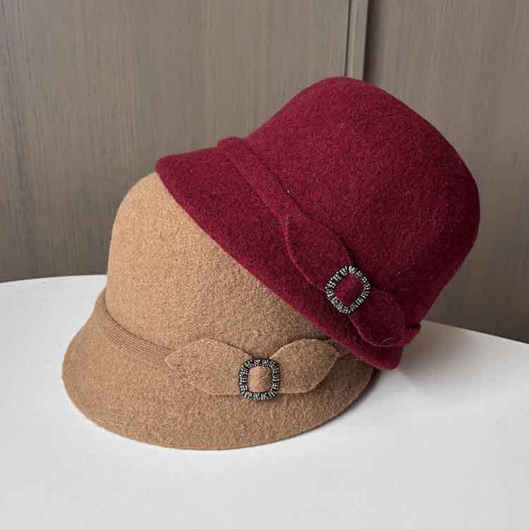 Шляпа-цилиндр из шерсти с узкими полями, ретро, темпераментная, с бриллиантовой пряжкой, британская мода, осенне-зимняя, теплая, женская, новая вязаная шляпа