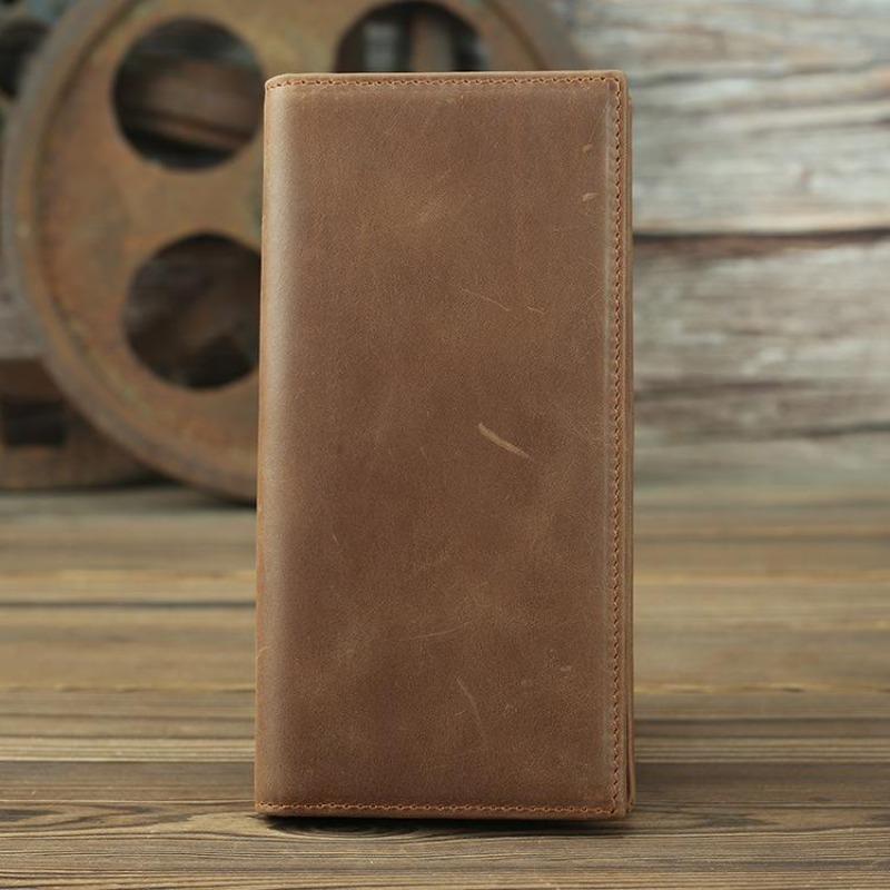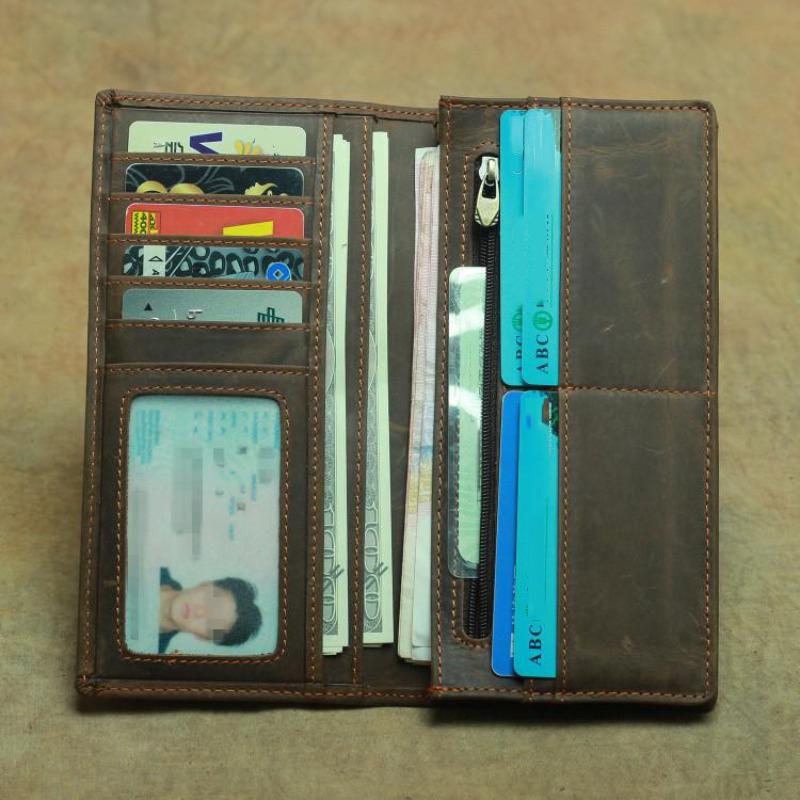 Мужской длинный кошелек бифолд из натуральной кожи Crazy Horse, винтажный классический кошелек из коровьей кожи, прочный кошелек для карт и наличных