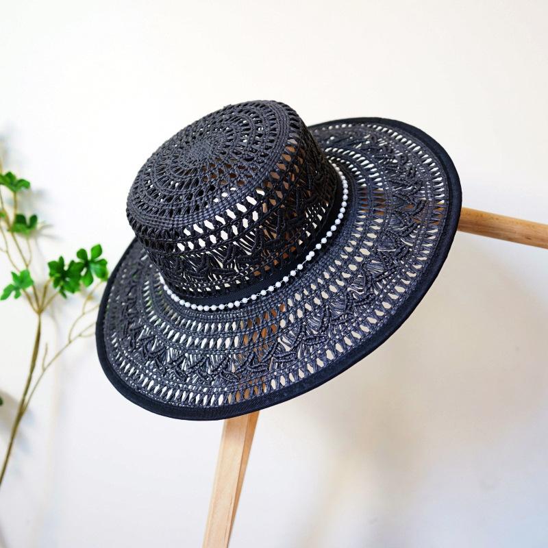 Французский Ретро Элегантный Ажурный Плетеная Плоская Вершина Цилиндр Женская Летняя Шляпа от Солнца Отпуск Соломенная Шляпа Соломенная Шляпа Пляжная Японская