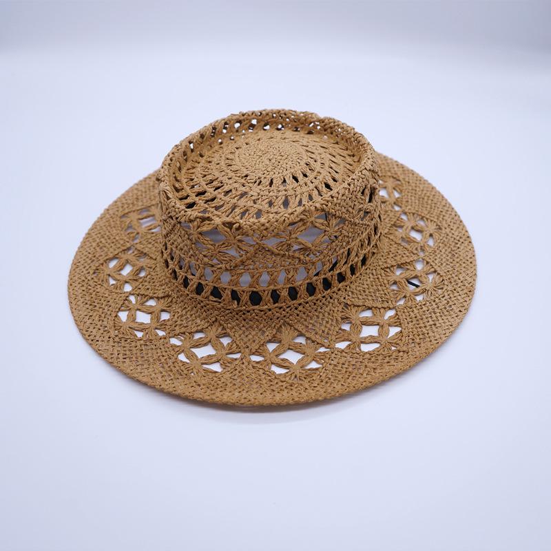 French Retro Hollowed-Out Flower Color Woven Flat-Top Straw Hat Trendy Girl Summer Vacation Top Hat Japanese Sun Top Hat