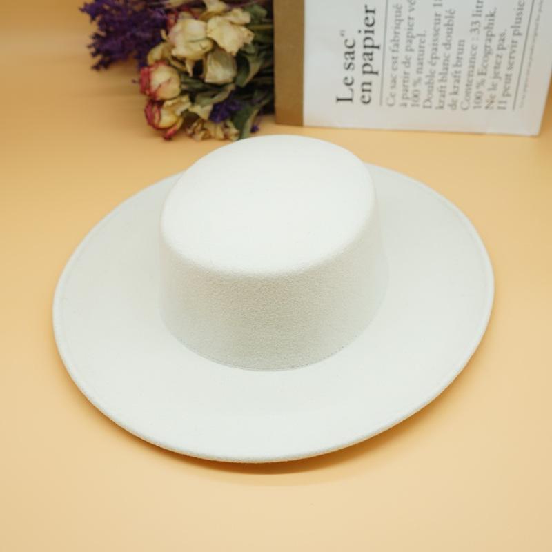Корейская Белая Шерстяная Плоская Вершина Цилиндр Женская Осенне-Зимняя Широкополая Французский Ретро Внешняя Торговля Легкая Шляпа из Войлока Британская Шляпа
