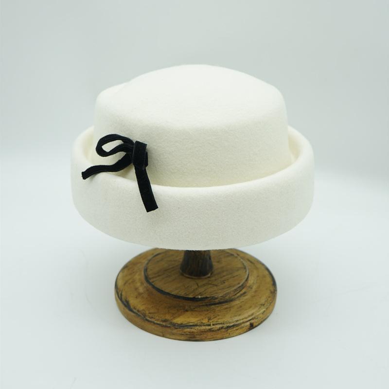 Белый Элегантный Бант Завитая Шерсть Шерстяной Цилиндр Женский Осень И Зима Теплый Японский Войлок Милый Универсальный Светский