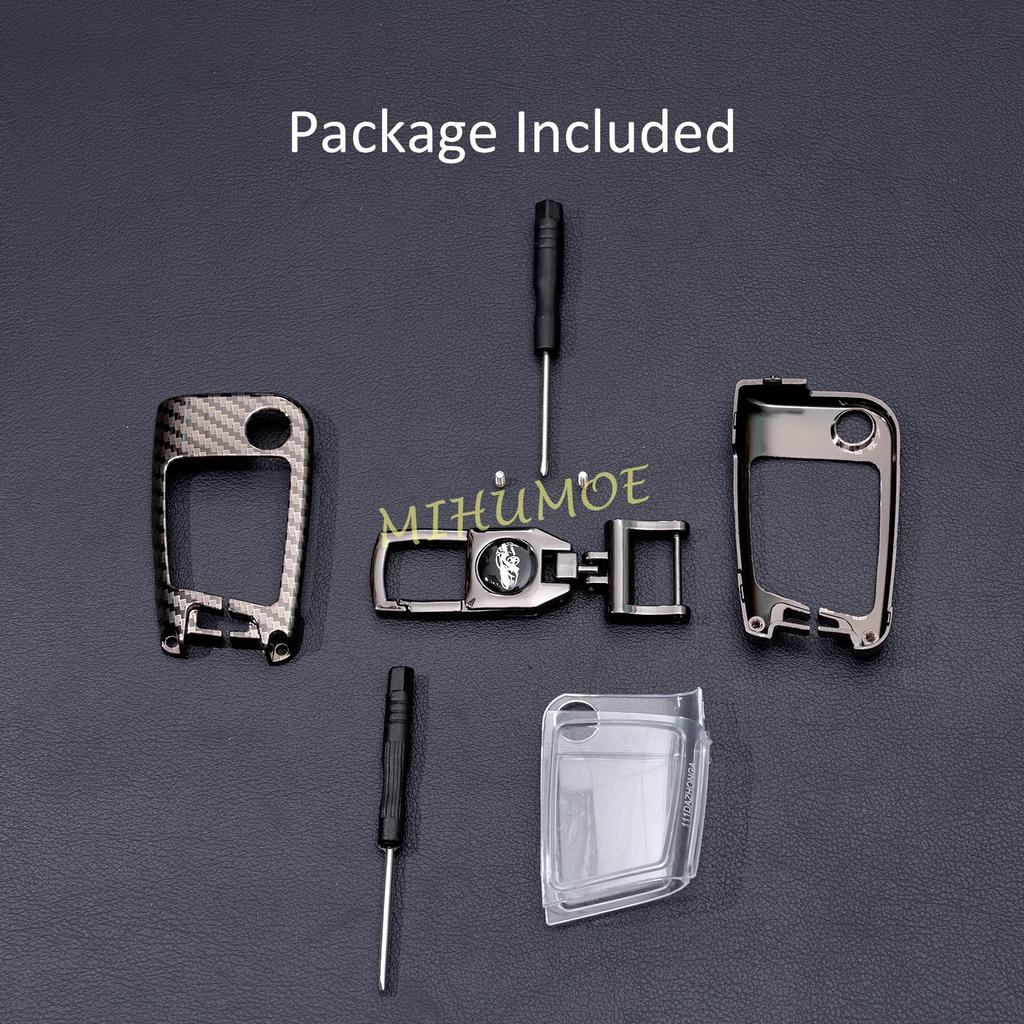 Металлический чехол-брелок из углеродного волокна с кольцом и цепочкой для ключа автомобиля для VW Golf 7 Tiguan Polo Skoda Octavia Kodiaq Karoq Superb SEAT Ateca