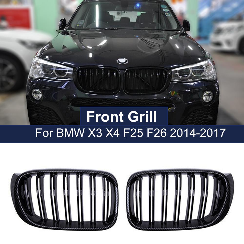 Пара автомобильных решеток на передний бампер из углеродного волокна для BMW X3 X4 F25 F26 2014 2015 2016 2017, двойная планка, отделочная полоса для почек — купить товар онлайн с бесплатной доставкой по всему миру!