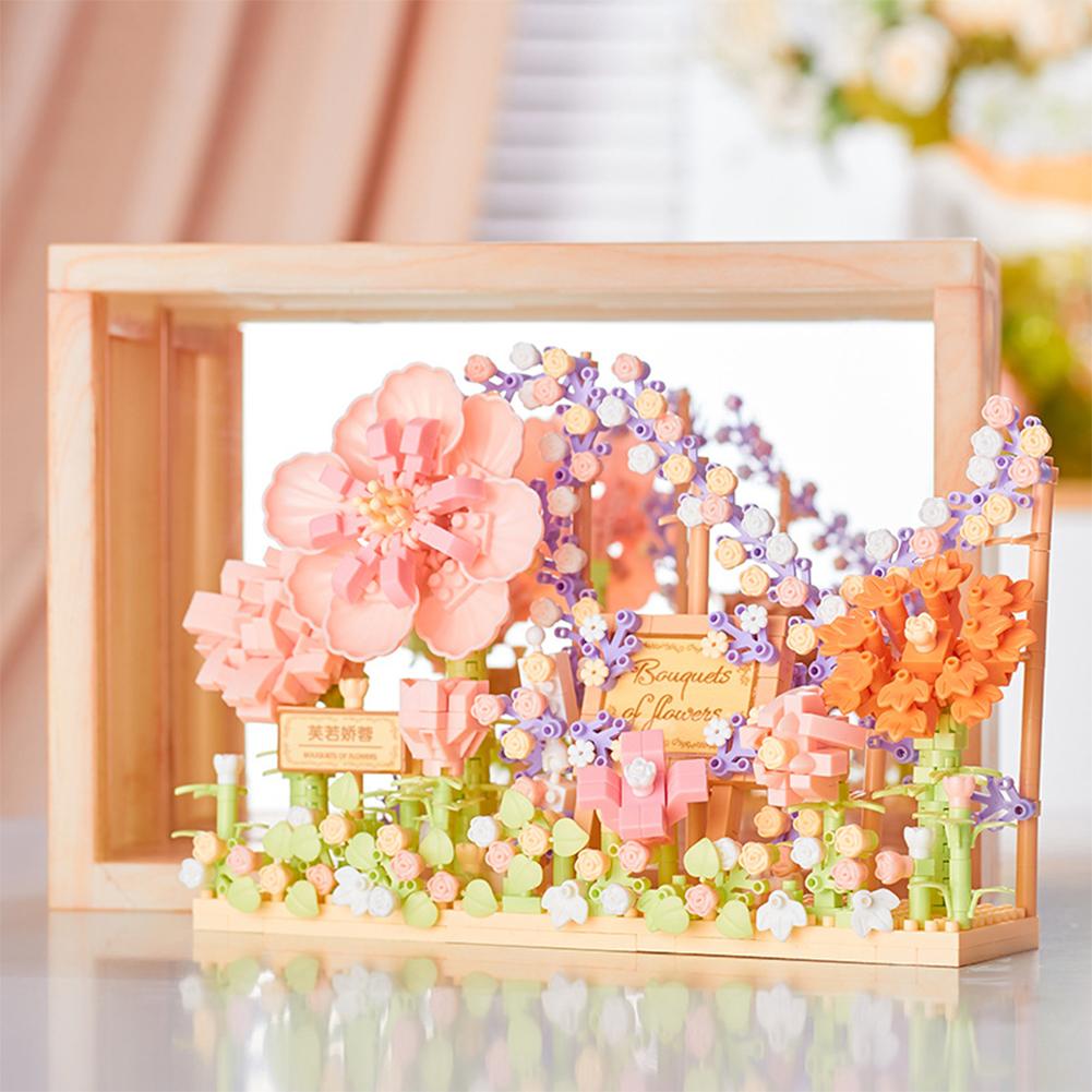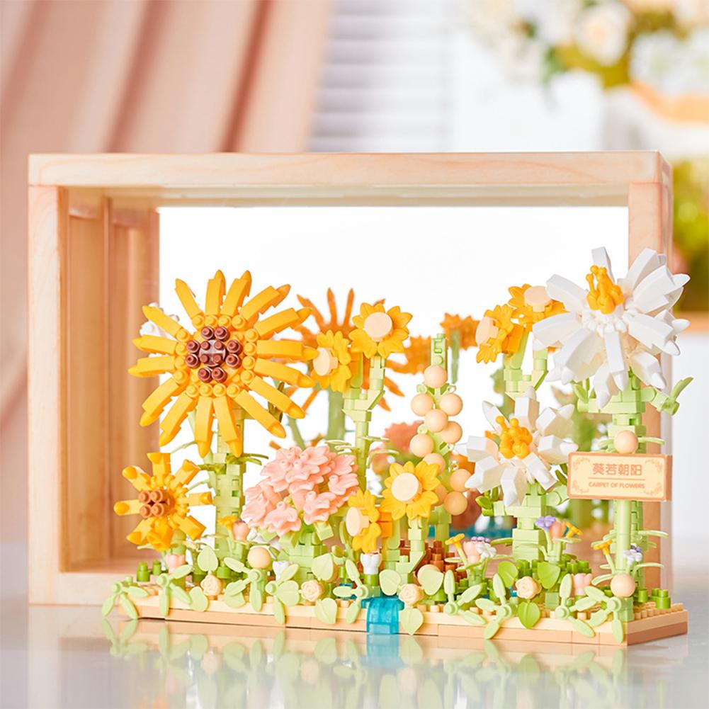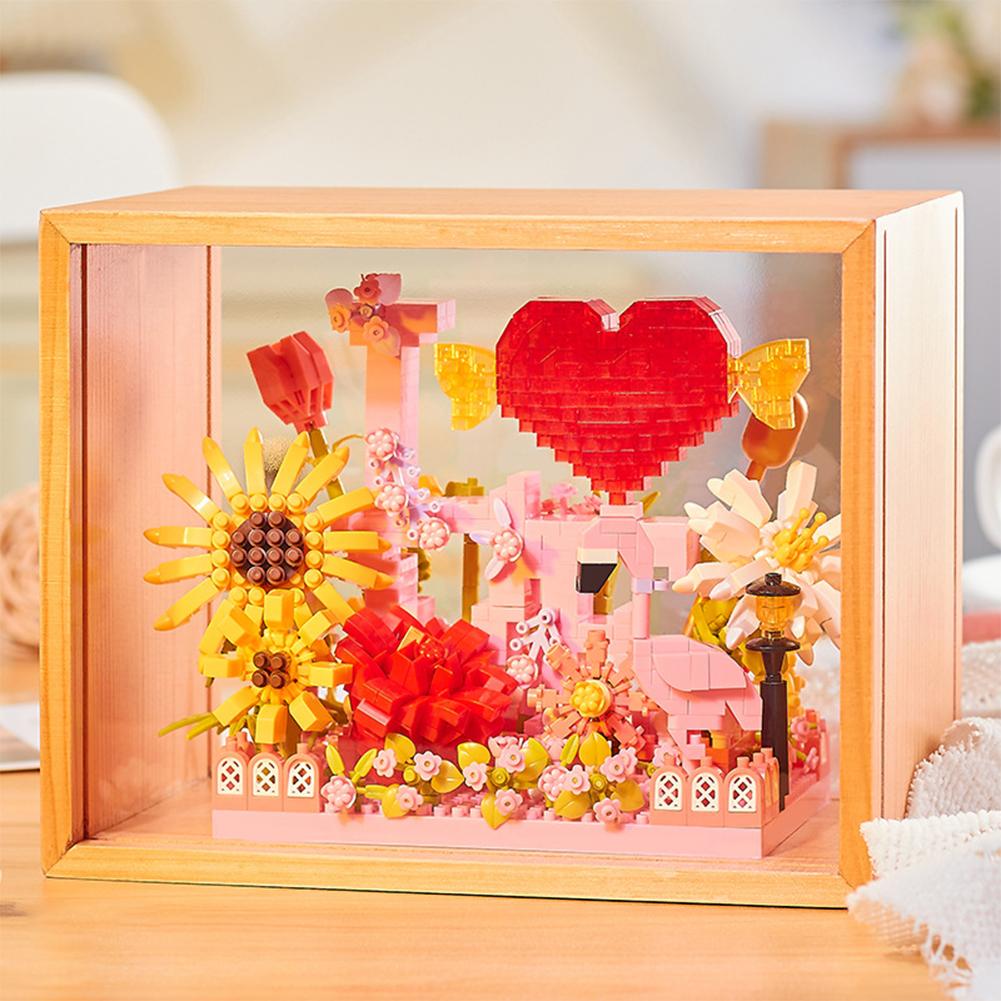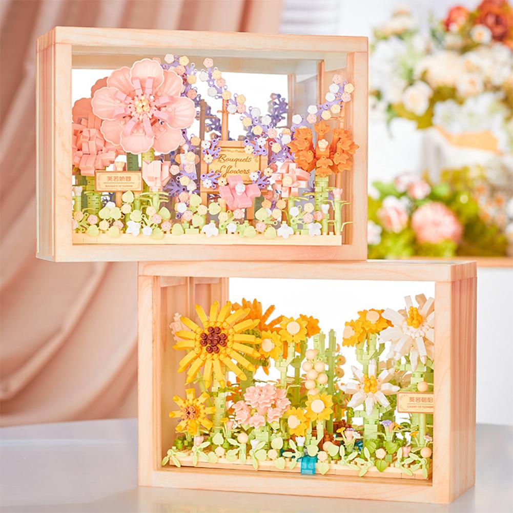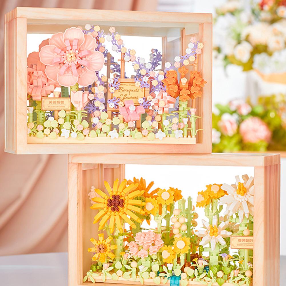 Цветочные строительные блоки с фоторамкой DIY Подсолнух Роза Строительные кирпичики Украшения Ночник Подарки для девочек и мальчиков