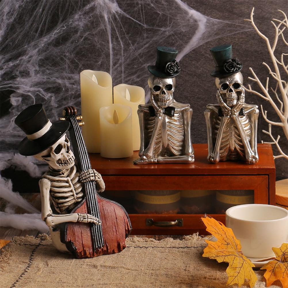Хэллоуин Скелет Фигурка Страшный Хэллоуин Смола Череп Статуэтка Украшения Для Праздничной Вечеринки Комнатные Украшения