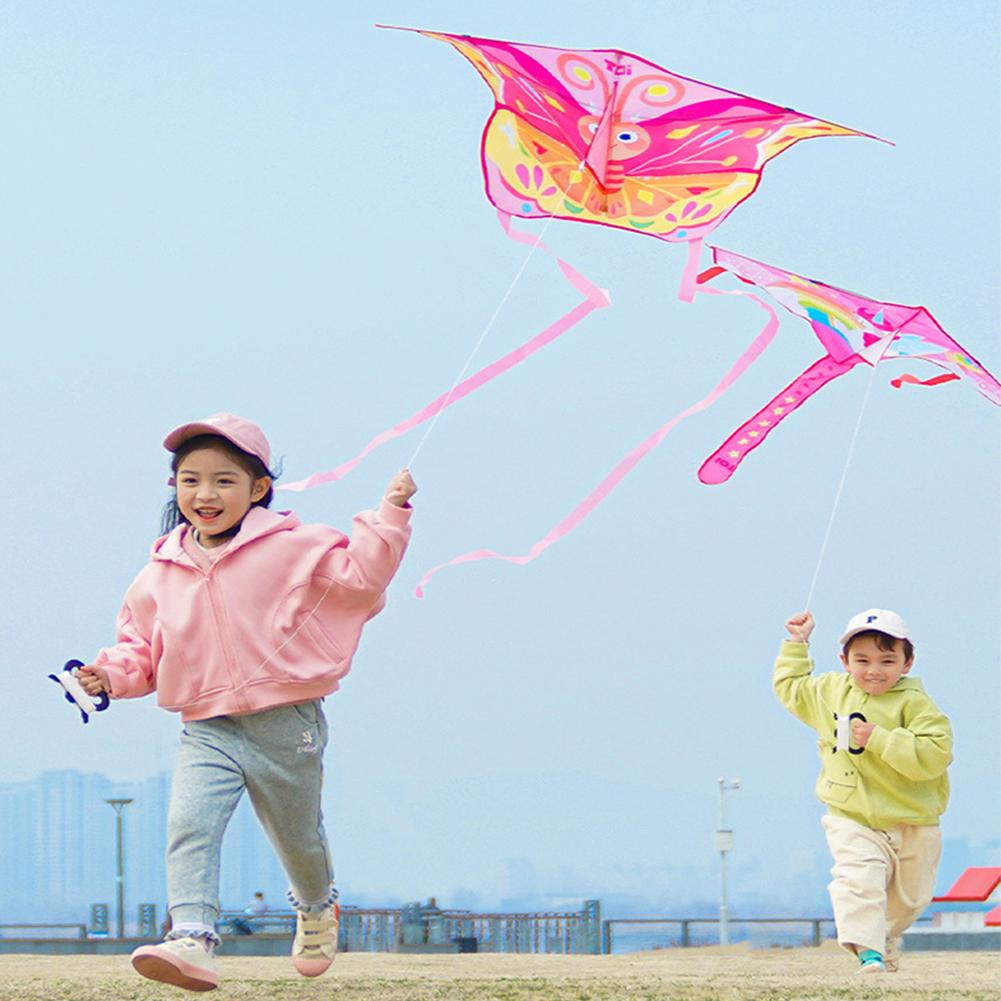 Детский воздушный змей Одностропный змей с ленточным хвостом, со 164-футовой леской для семейных игр на открытом воздухе, пикников, поездок на пляж, собраний