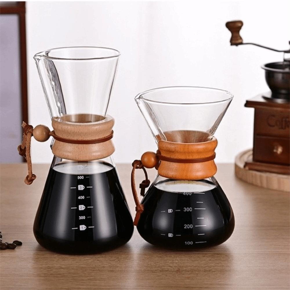 Filter Pot Stainless Steel Coffee Pot Glass with Fliter Tea Kettle Wooden Handle High-Temperature Resistant Coffeeware Home