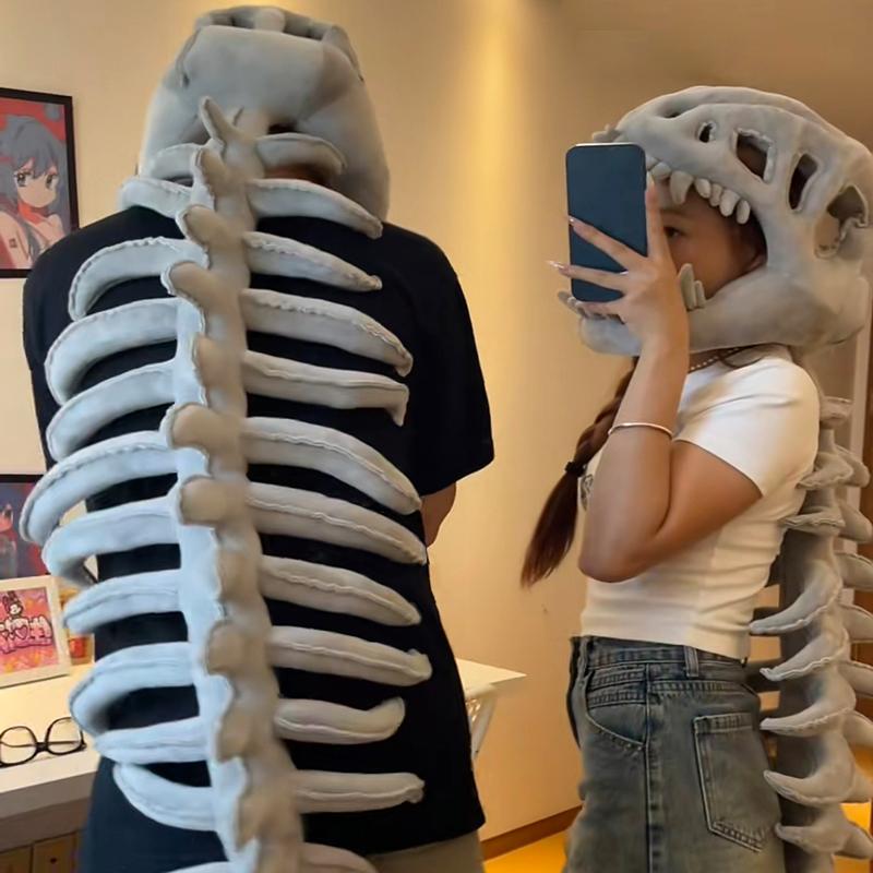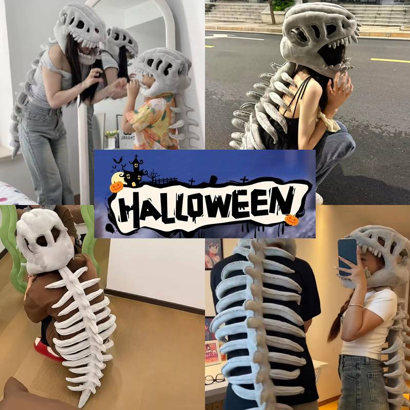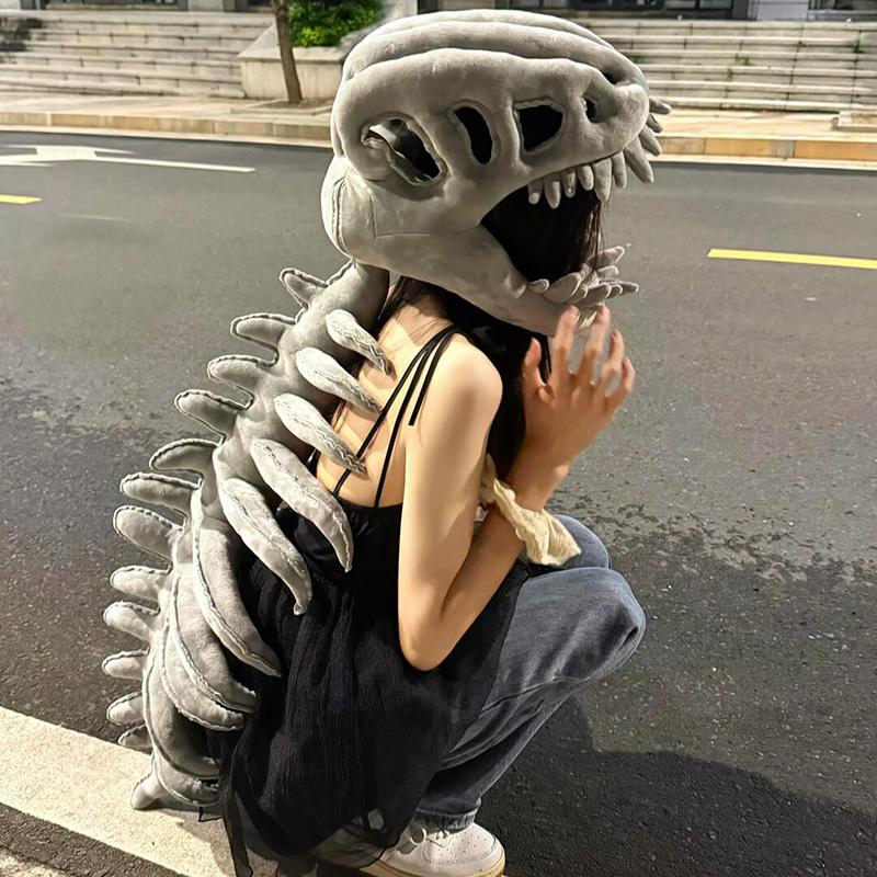 Креативный костюм скелета динозавра, маска на всю голову, плюшевая маска-капюшон, реалистичный позвоночник, головной убор-скелет, реквизит для косплея на Хэллоуин