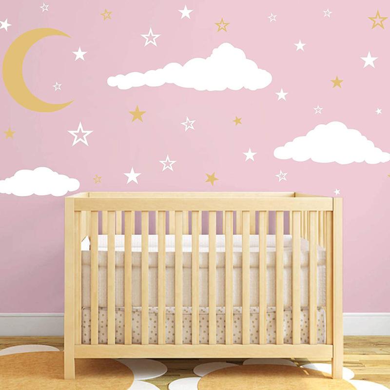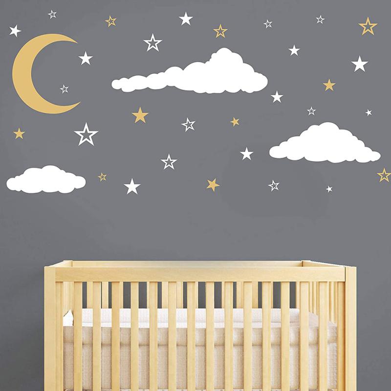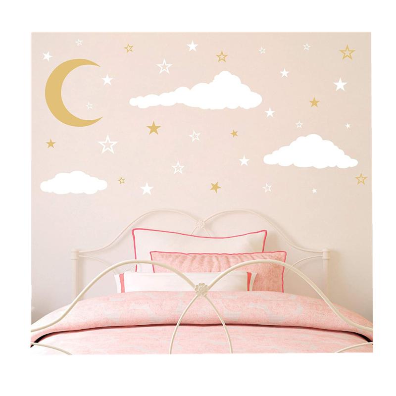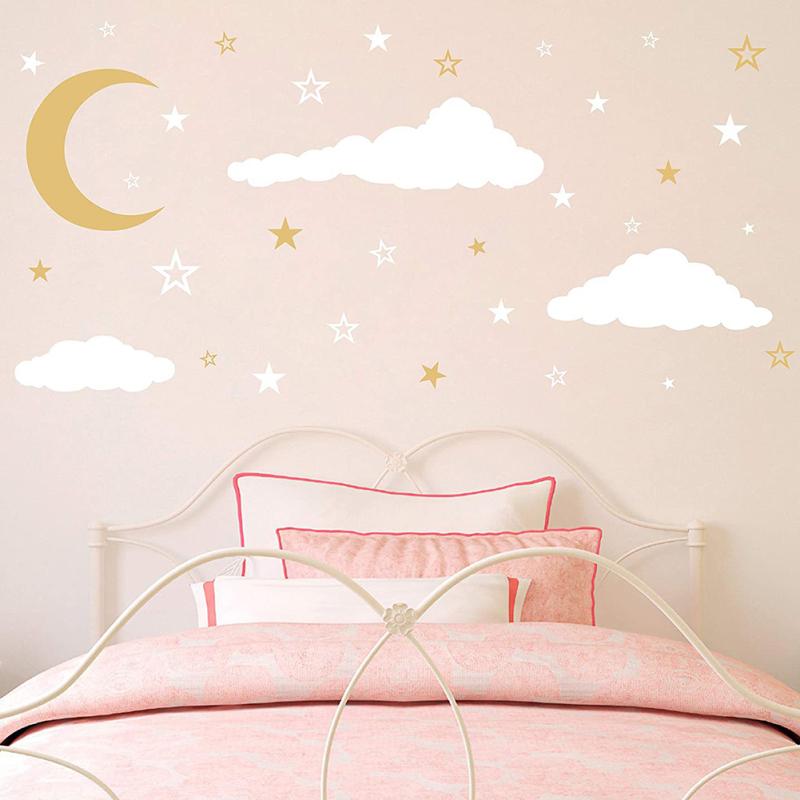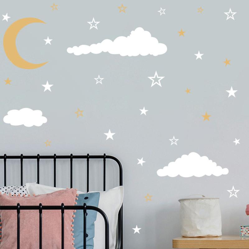 Самоклеящиеся наклейки на стену с резными лунными облаками и звездами, детская комната, макет детского сада