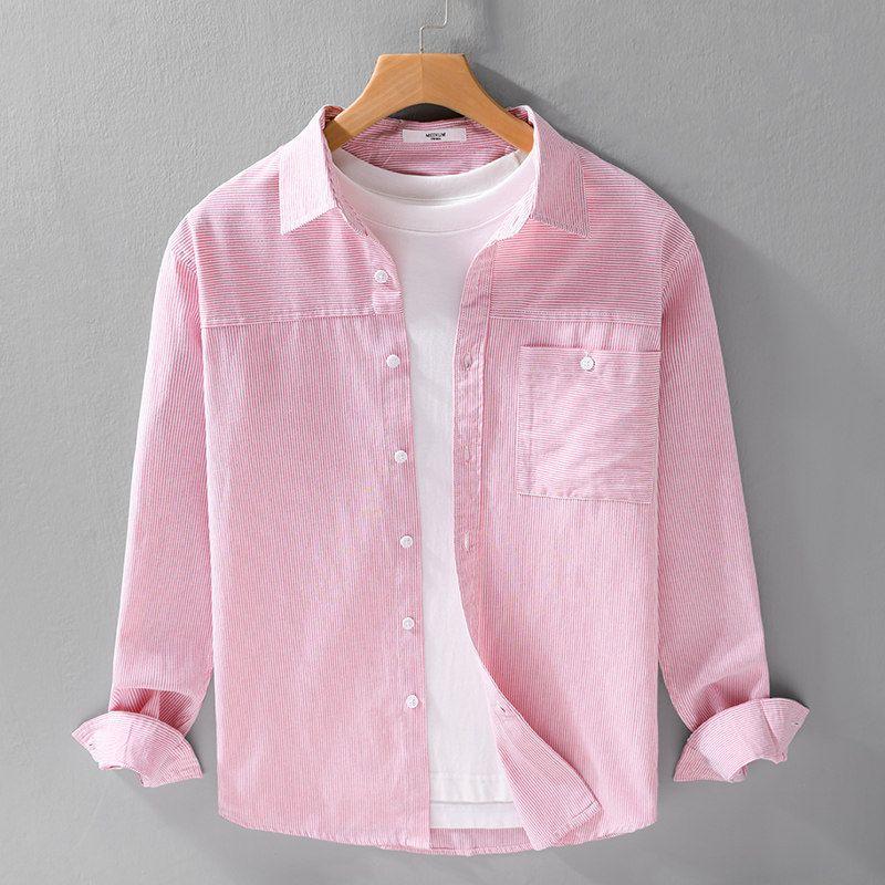 Spring Summer Japan fashion Fresh Stripe Long sleeve Shirts Men's Clothing Artistic Youth Loose Casual Shirt Oxford Thin