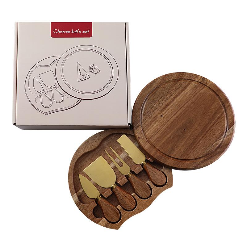 Stainless Steel Cheese Knives Set Round Charcuterie Board Cheese Fork Spreader Serving Tray Btter Tools With Gift Box