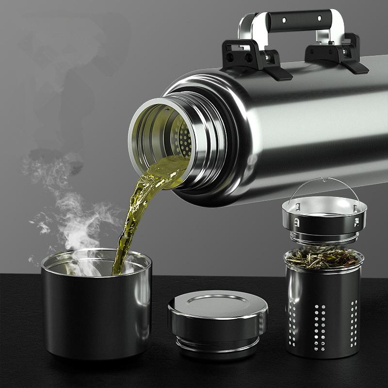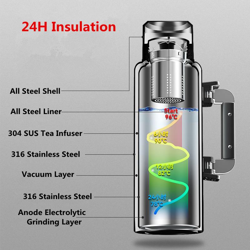 Термос из нержавеющей стали 316 большой вместимости, бутылка для воды с ручкой и ситечком для заваривания чая, для чая, кофе, вакуумный изолированный тамблер 2,5 л