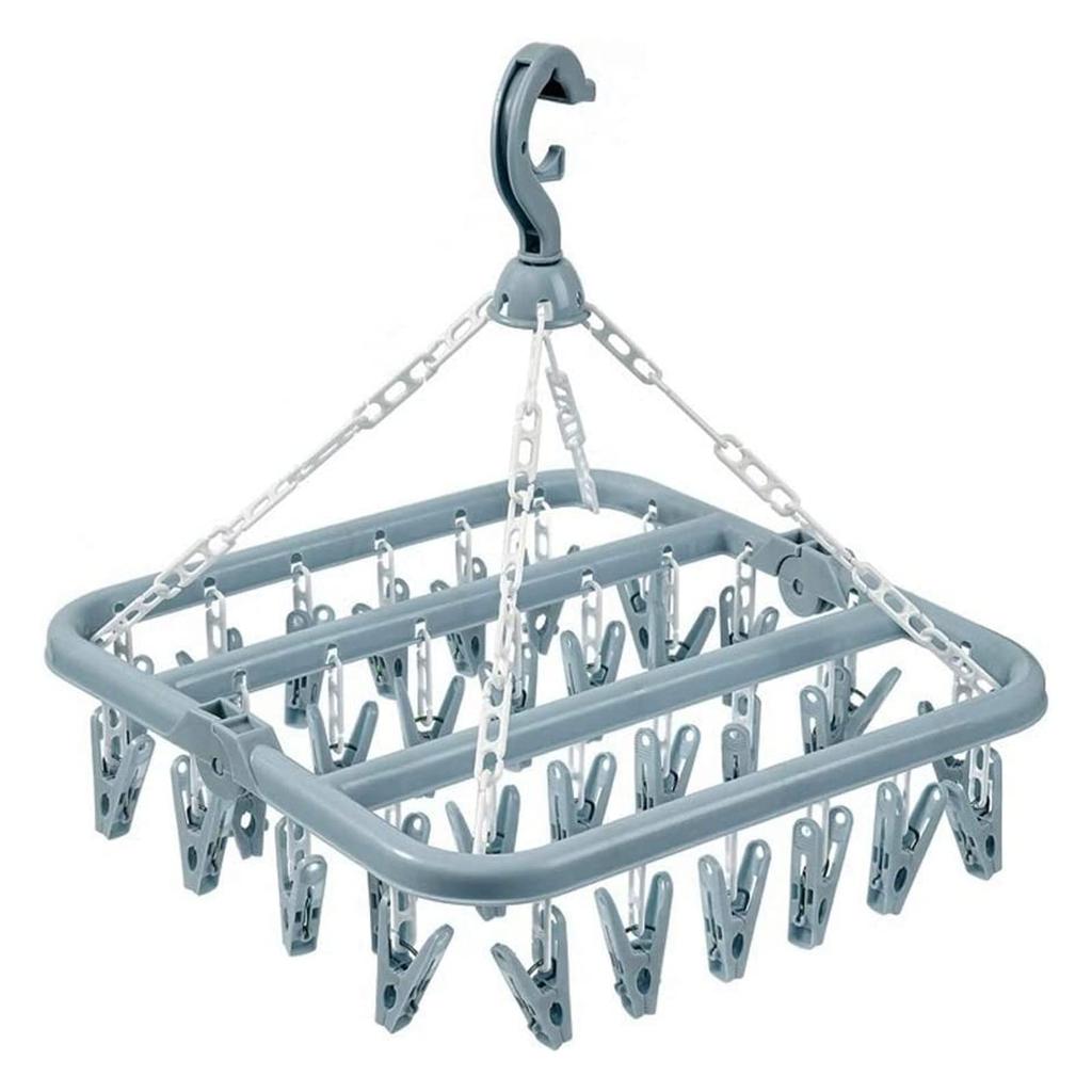 Складная вешалка для капель с 32 зажимами - пластиковая подвесная сушилка для одежды, нижнего белья, носков