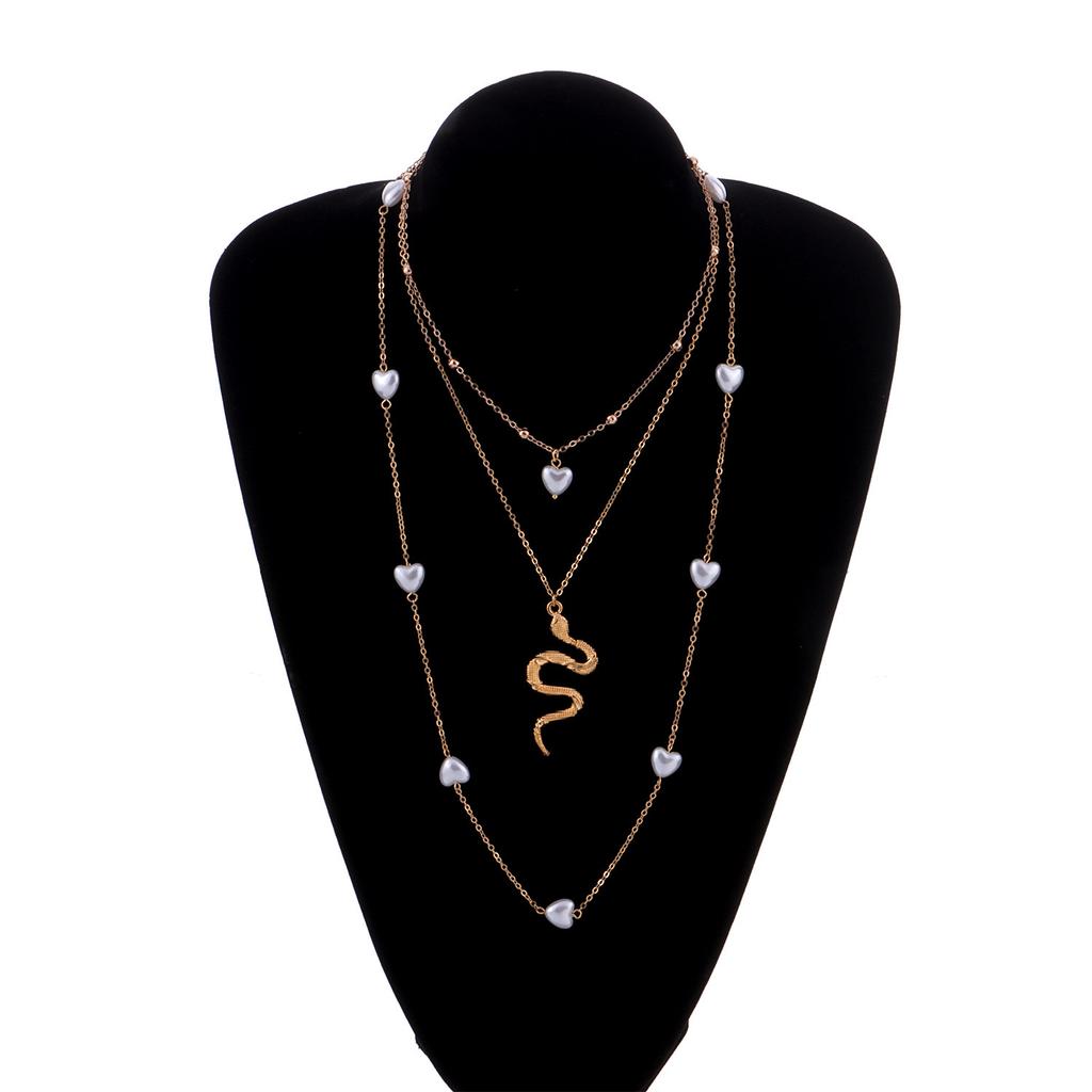Модное многослойное ожерелье с подвеской в виде змеи с жемчугом любви, модные универсальные женские аксессуары