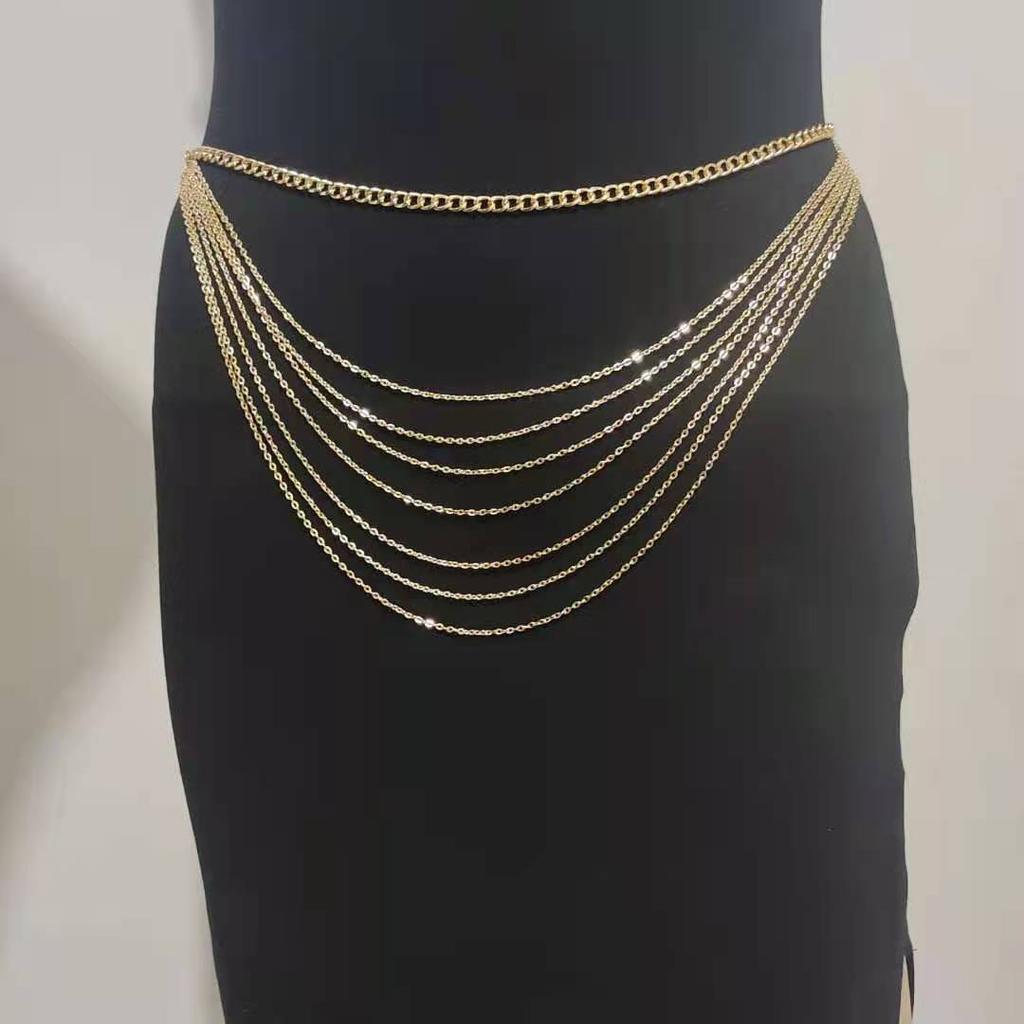 Взрывная простая и холодная геометрическая U-образная поясная цепочка женская личность преувеличенная многослойная цепочка с бахромой поясное украшение