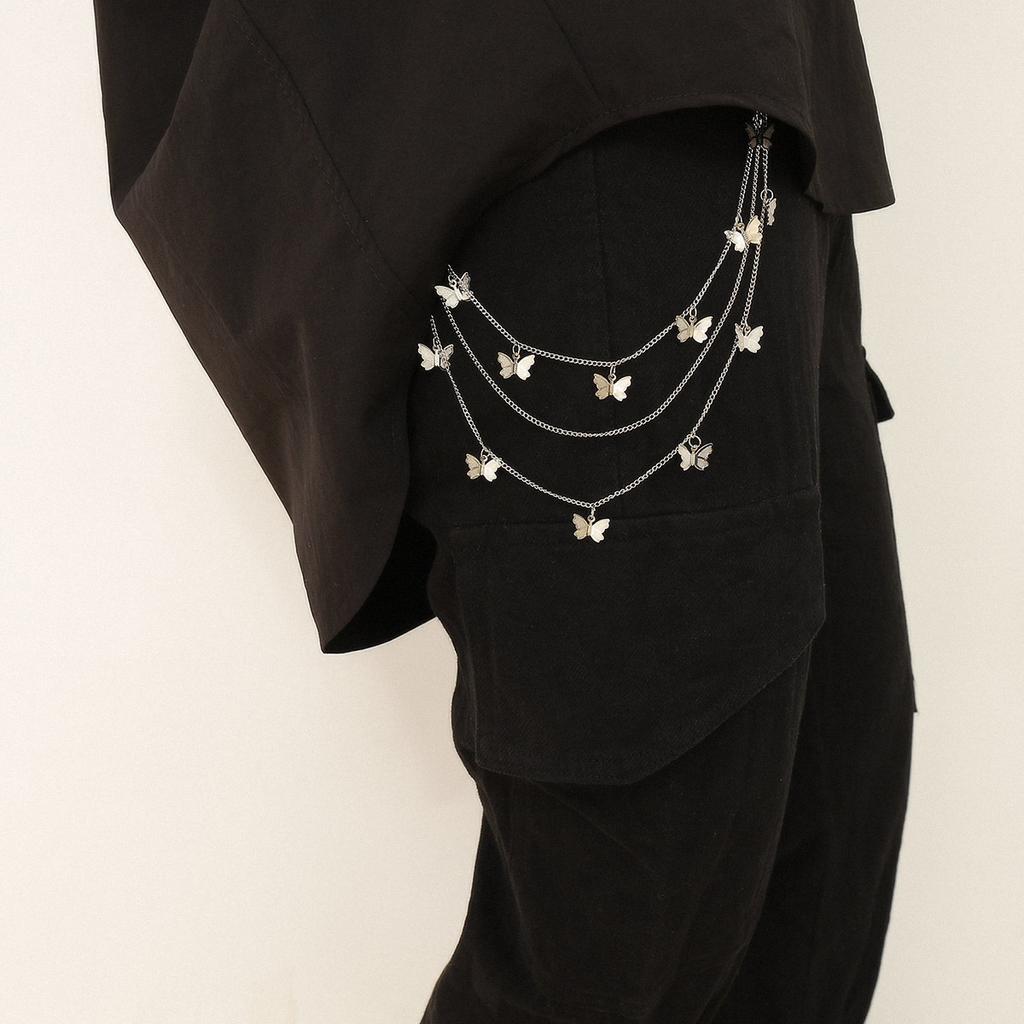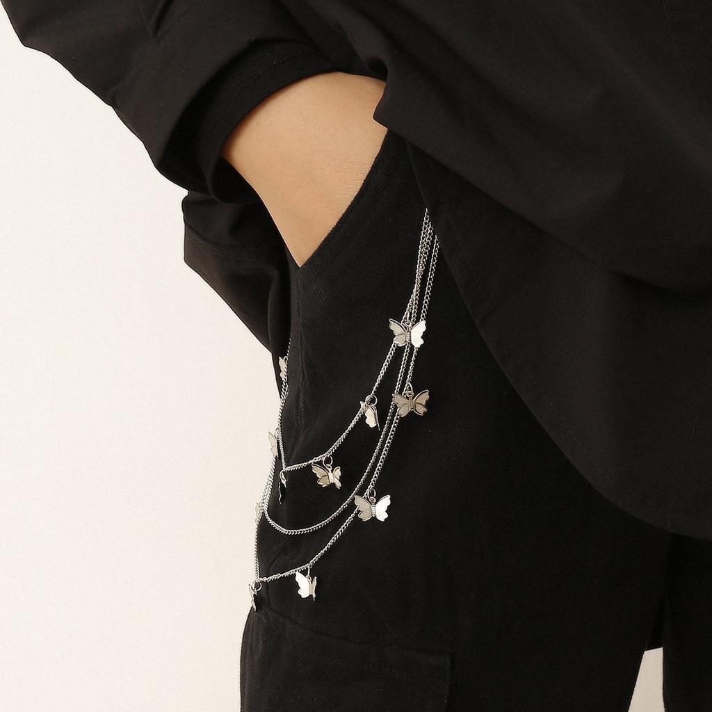 Punk tassel U-shaped versatile body chain female, multi-layer chain small butterfly pendant waist chain