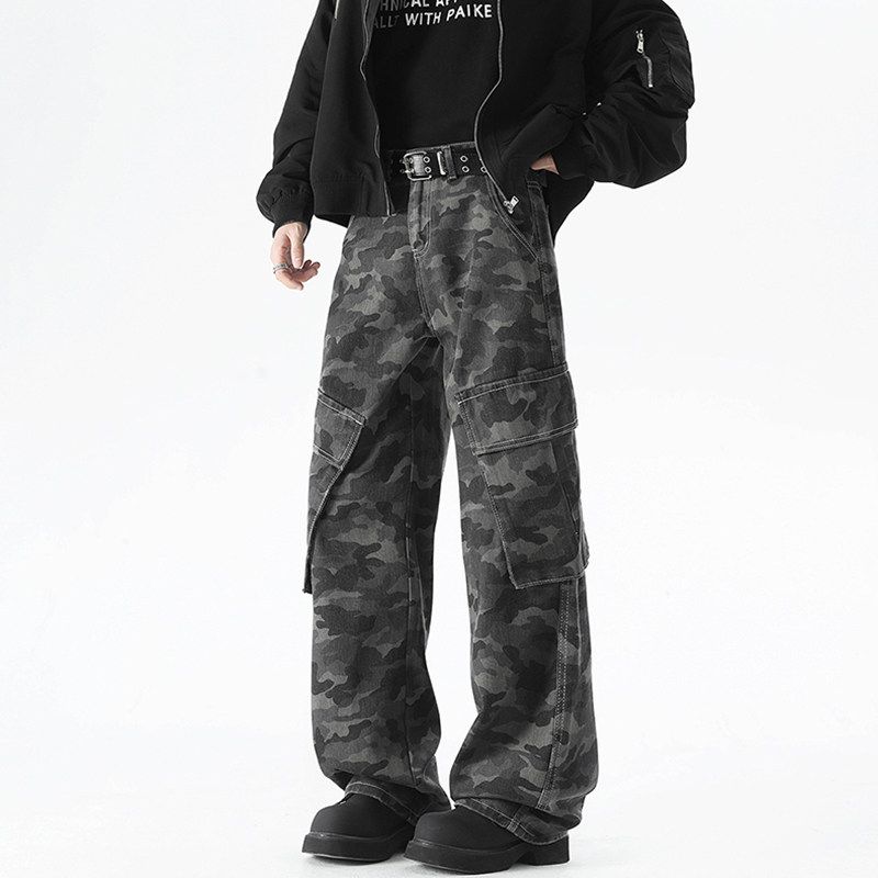 51 Бренд хип-хоп моды Многокарманные камуфляжные джинсы Мужские винтажные свободные брюки с широкими штанинами Прямые брюки карго