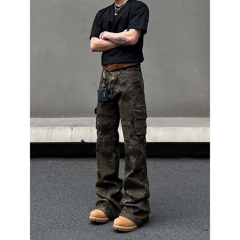 Blaexit Американские ретро-брюки-карго с камуфляжным принтом, множеством карманов, прямым кроем, зауженные к низу, слегка расклешенные, повседневные — купить товар онлайн с бесплатной доставкой до всему миру!