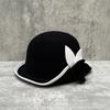 Шерстяная шляпа-ведро в стиле Хепберн, женская, французская, ретро, элегантная, шляпа-горшок с камелией, контрастная отделка, универсальная шляпа-топ