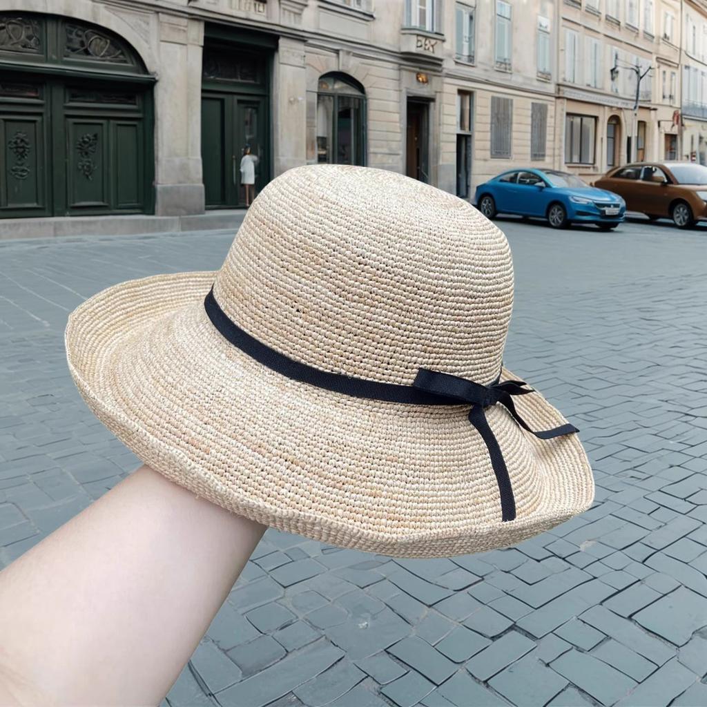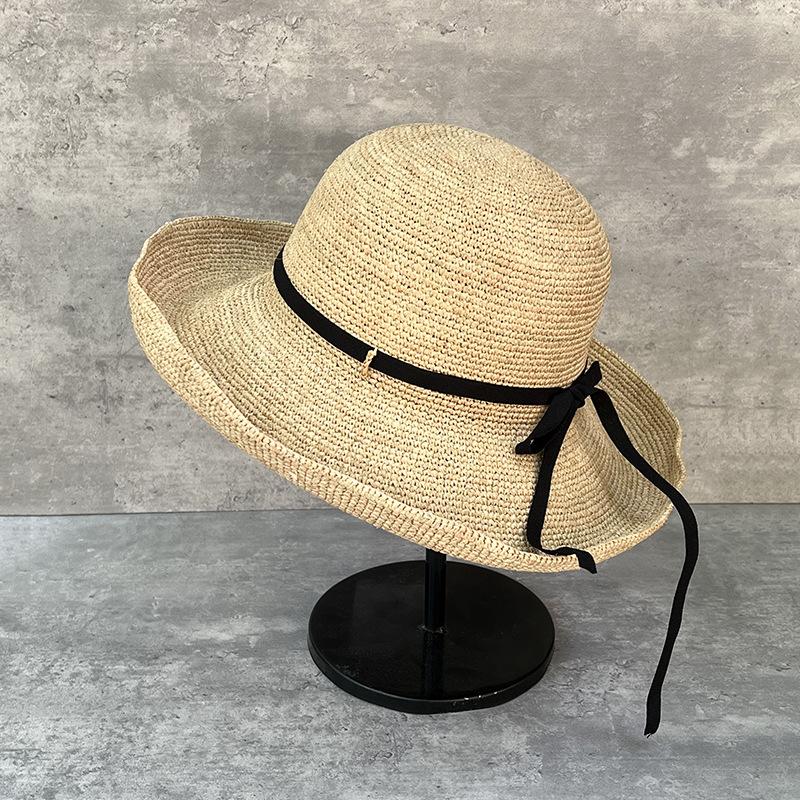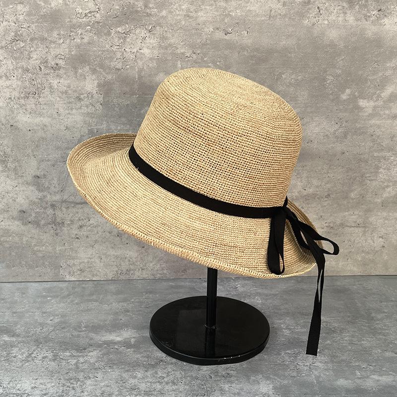 Japanese Literary And Artistic Bow Straw Hat Women'S Summer Sunshade Big Brim Raffia Hand-Woven Basin Hat