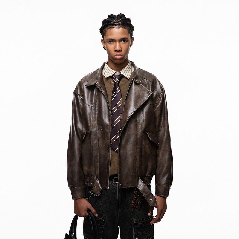 51 Hip-Hop American Style Cleanfit Solid Color Pu Leather Jacket for Men and Women Trendy Brand Cool Loose Lapel Short Jacket