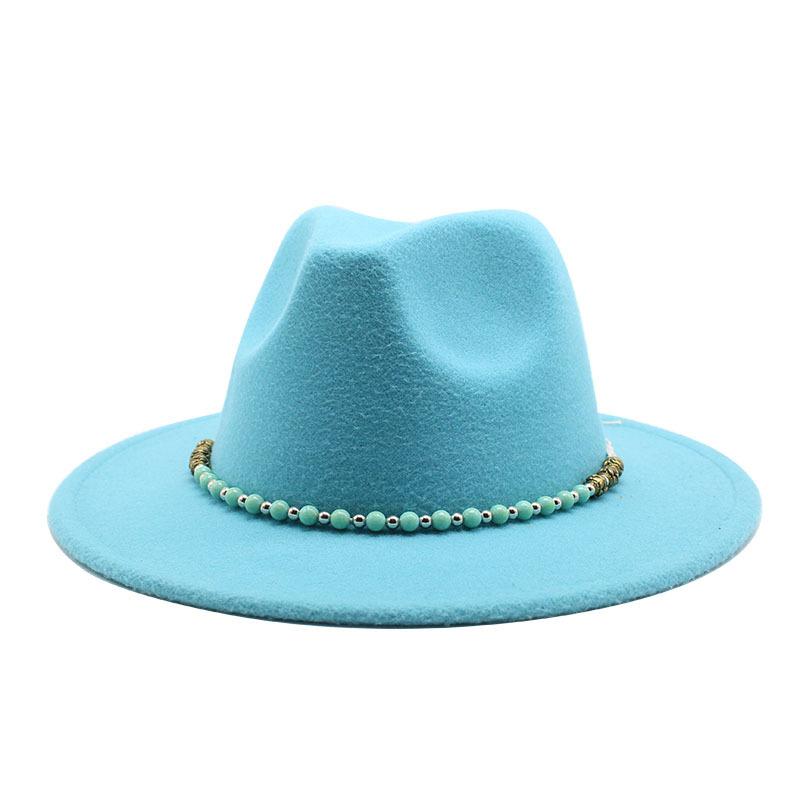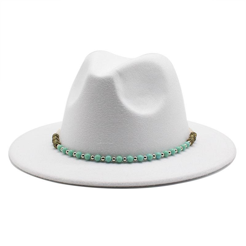 Цепь Шерсть Британская Винтажная Джазовая Шляпа Широкие Поля Цилиндр Шерстяная Шляпа Винтажная Шляпа с Широкими Полями Белый Цилиндр