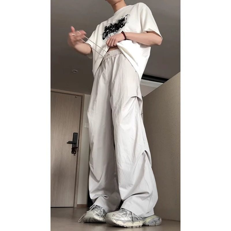 American Ruched Cargo Pants Men's Autumn Stylish Pants Niche Style Drape Wide Leg Handsome Quick-Drying Paratrooper Pants