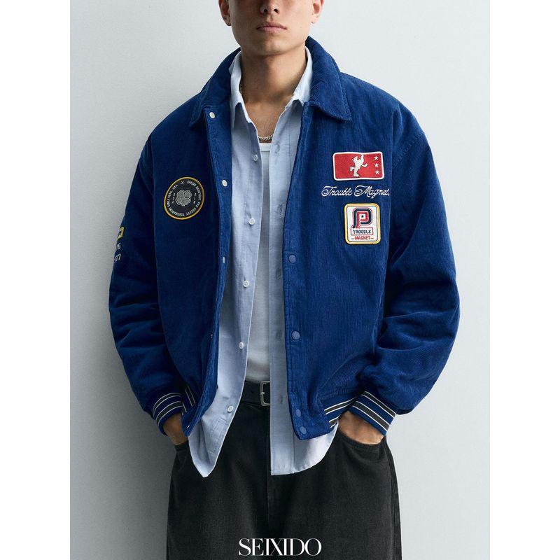 Cabinet 799! New Autumn and Winter Men's Embroidered Patch Corduroy Jacket 6318420 420 Loose Cotton Coat