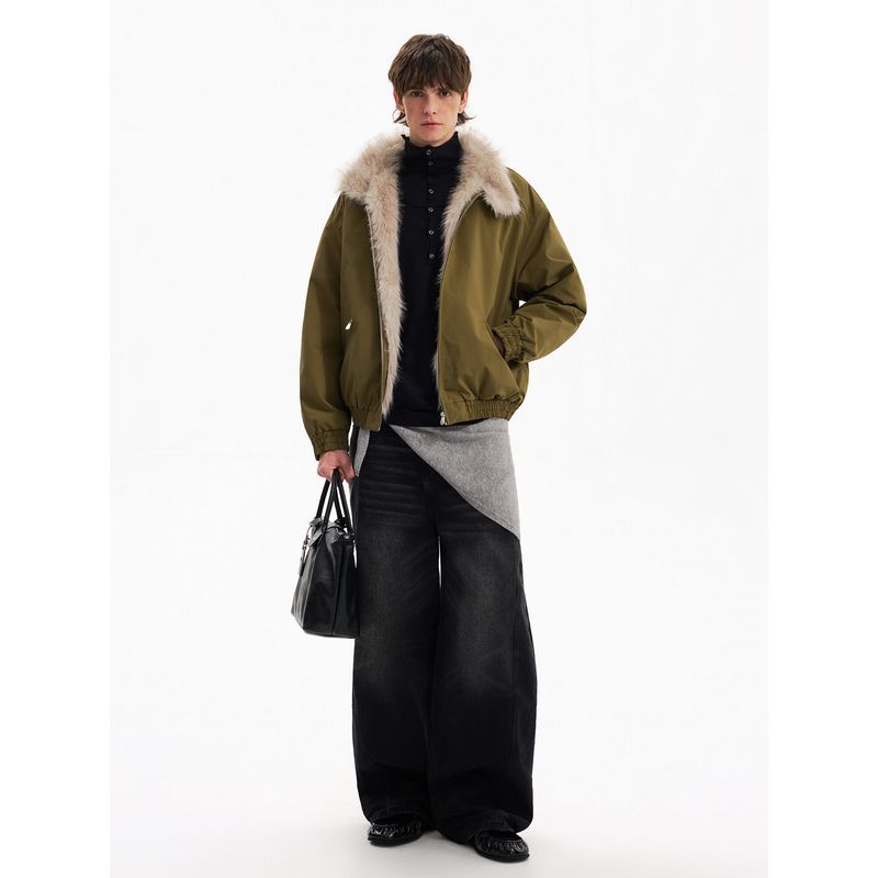 Blaexit Куртка Харрингтон мужская укороченная зимняя хлопковая с толстой подкладкой и воротником из искусственного кроличьего меха, зеленая