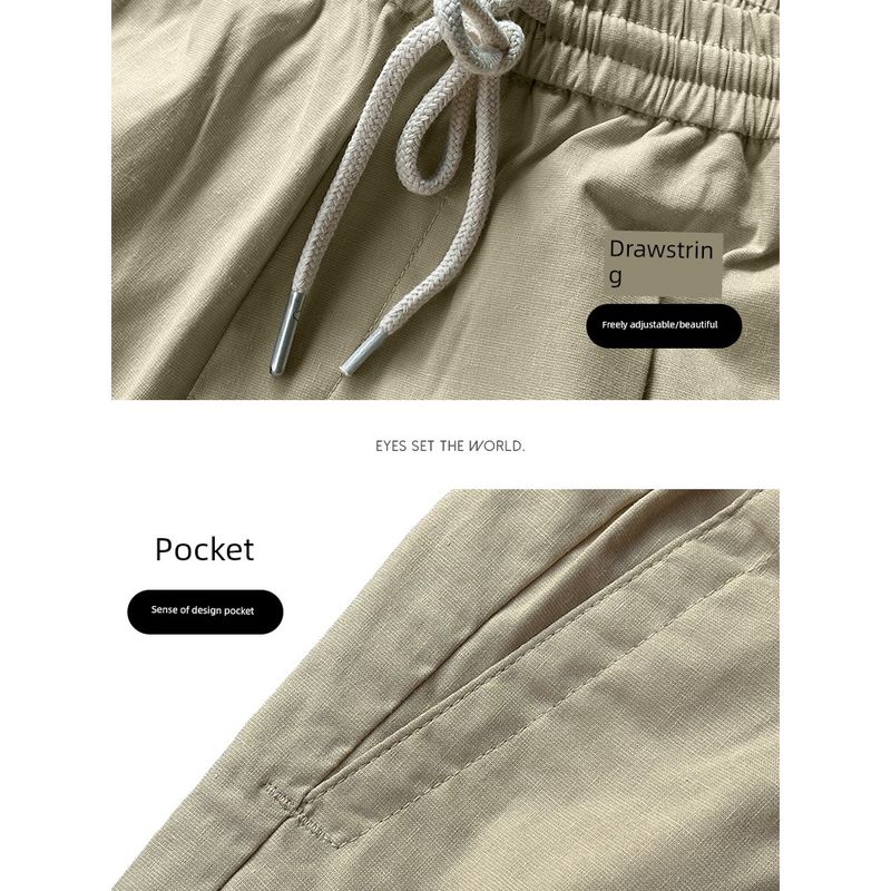Menseye Men's Casual Pants, Men's Elastic Waistband Tie Japanese-Style Tapered Pants, Cropped Pants