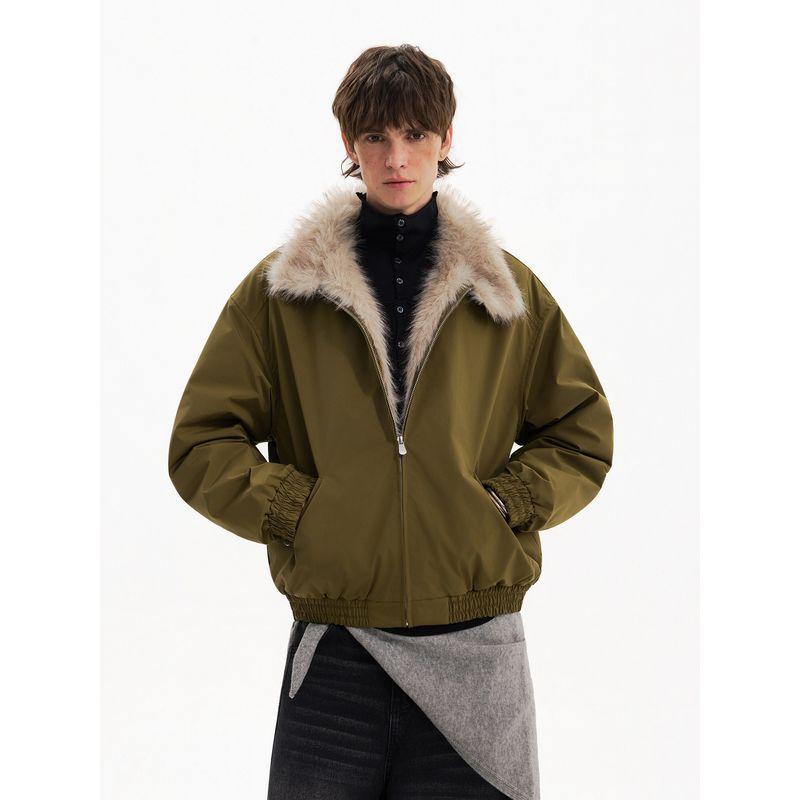 Blaexit Faux Mink Fur Collar Harrington Jacket Men's Thickened Winter down Cotton Short Coat