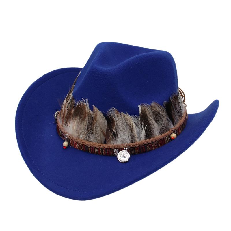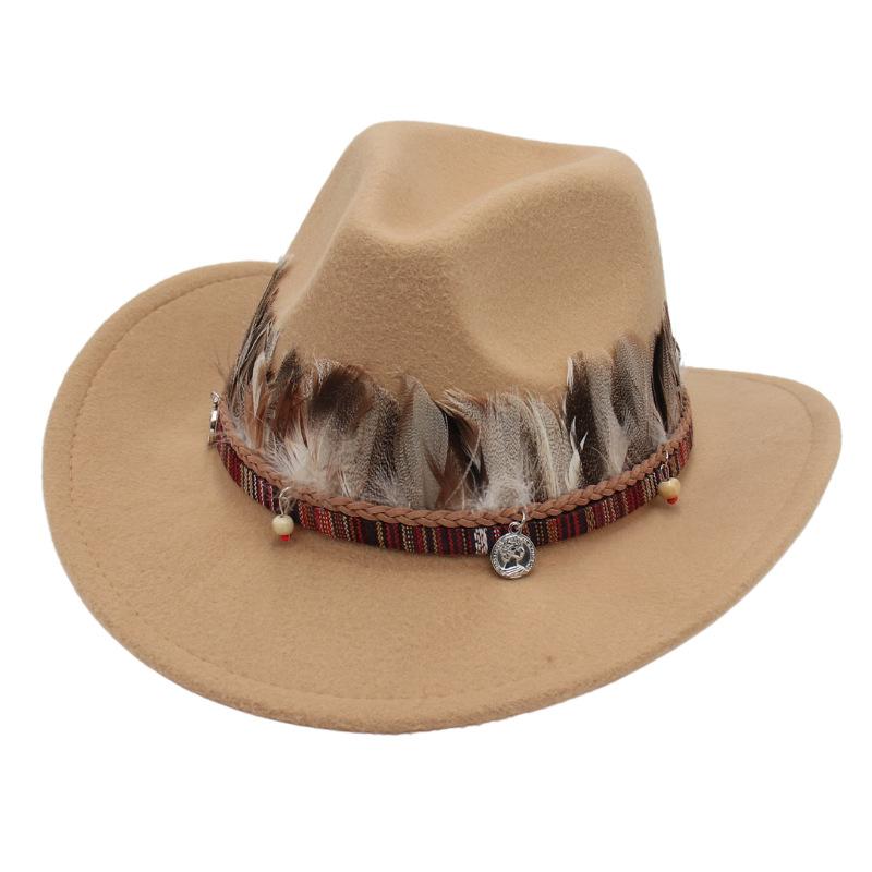 Feather Ethnic Style Top Hat Upturned Edge Western Cowboy Hat Guoluo Tibetan Tibetan Jazz Hat Hat