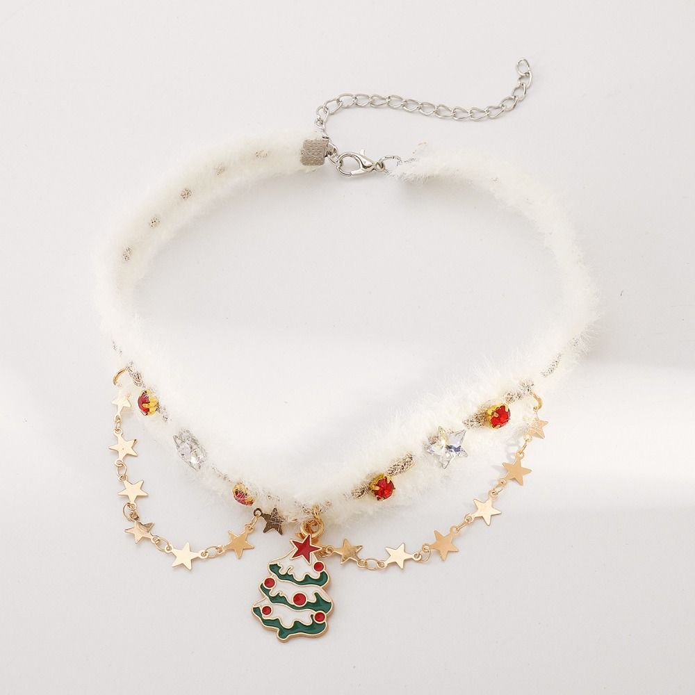Sweet Bow Pendant Necklace Christmas Tree Xmas Clavicle Chain Christmas Plush Choker Girls