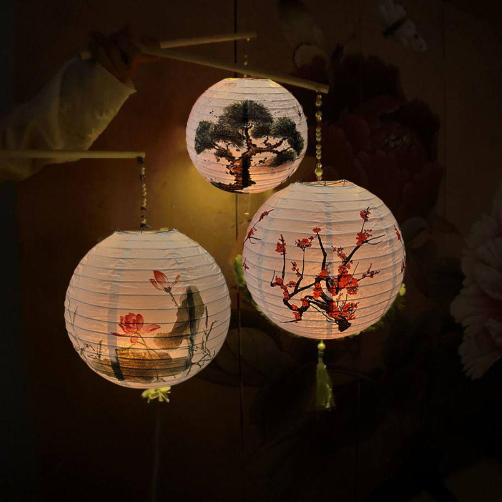 Подарки Домашнее украшение Подходящий к ханьфу Национальный день Цветочный фонарь Бумажный фонарь Абажур Круглая лампа