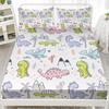 Многоцветный мультяшный узор с динозаврами, шапка на кровать из трех частей, цифровая печать, милый узор, постельный комплект