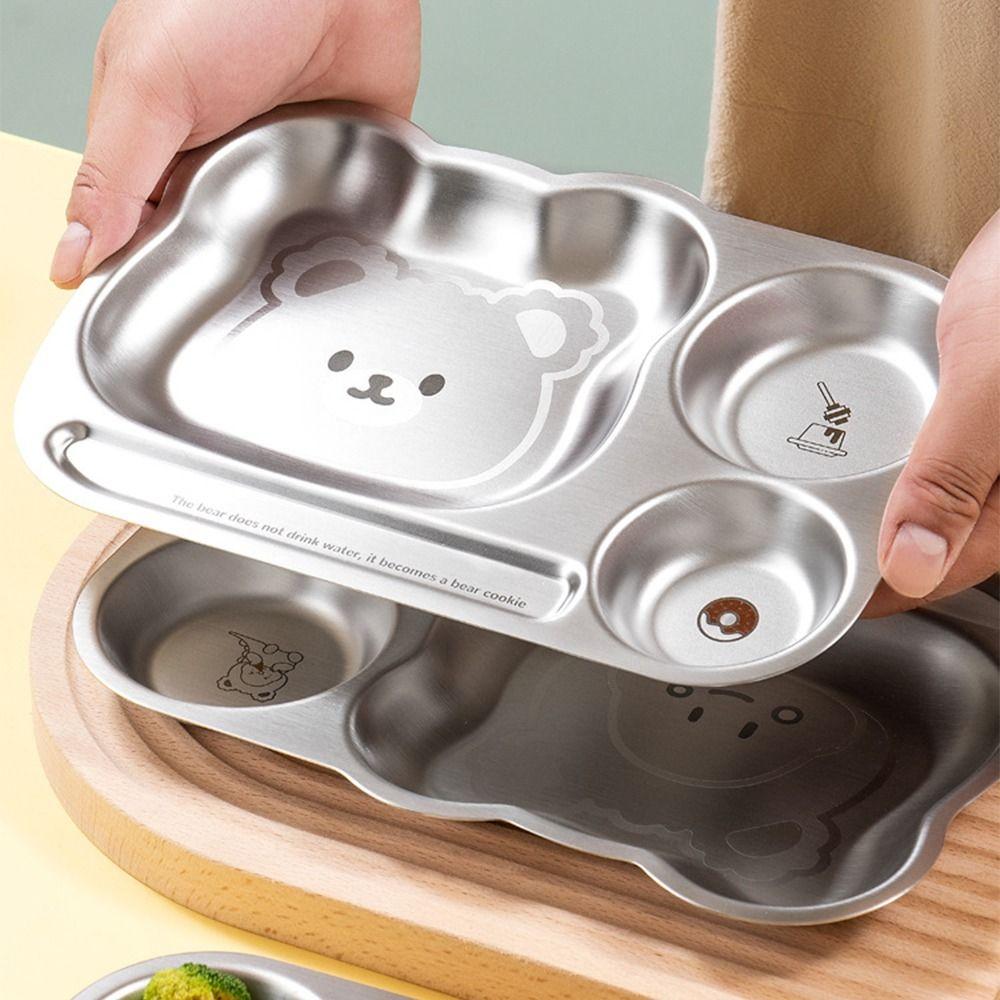 Multi Grids Children's Tableware Square Shaped Food Plate Stainless Steel Plate Fruit Salad