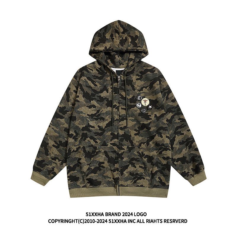 51 Hip Hop American Retro Functional Camouflage Cardigan Outwear Men's Trendy Fun Medal Decoration Loose Hooded Sweatshirt