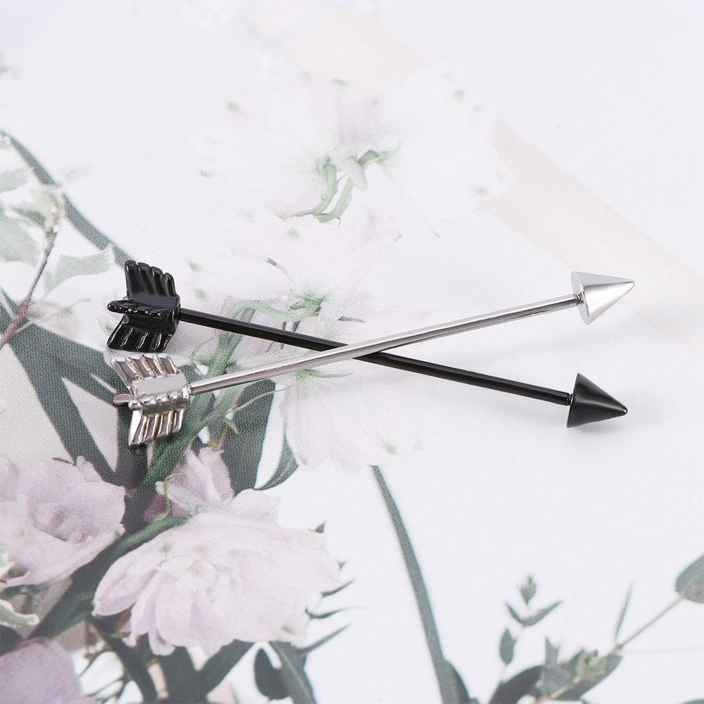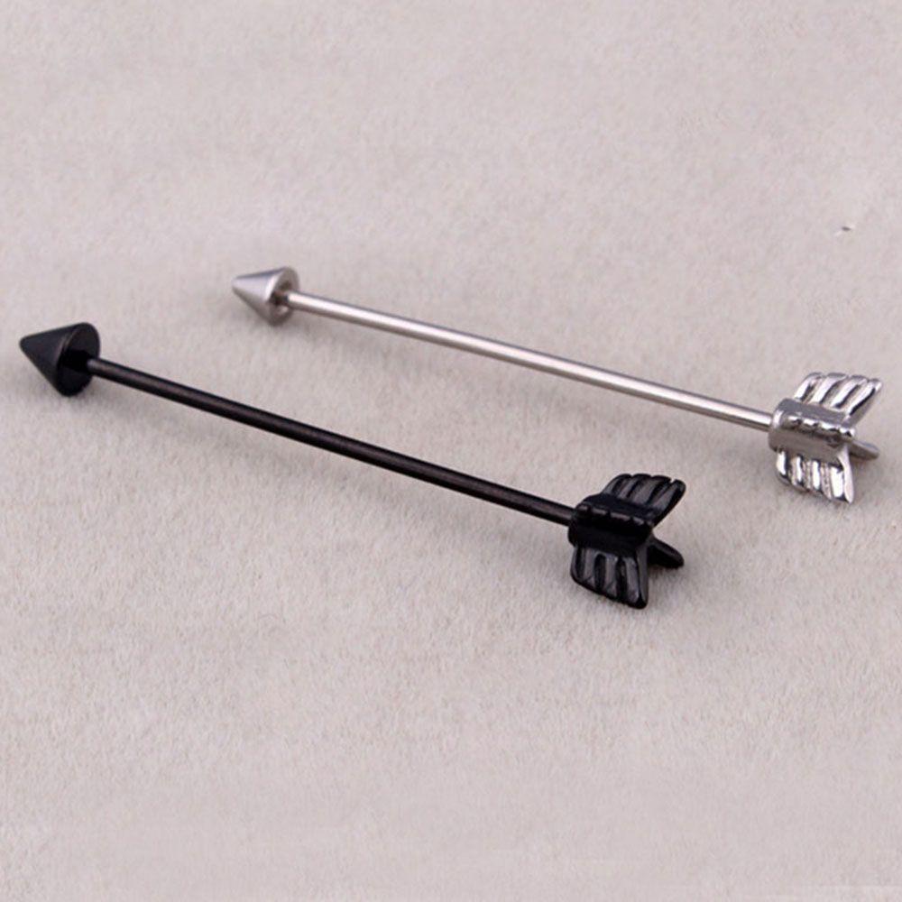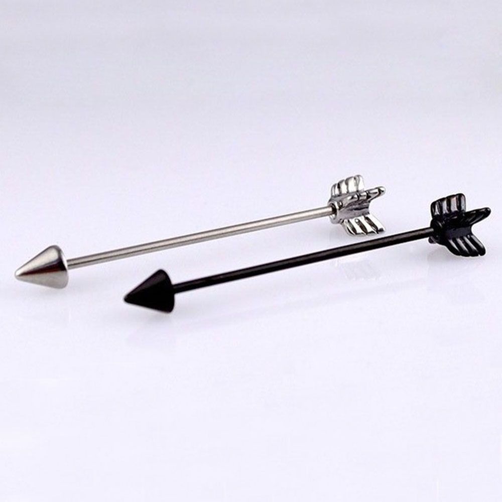 Screw Silver Industrial Barbell Stainless Steel Black Ear Cartilage Arrow Piercing Stud Earring