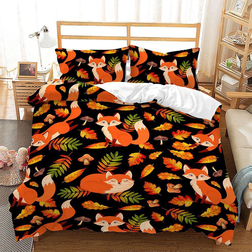 Little Fox Bed Three-Piece Quilt Cover 3D Digital Printing Kit