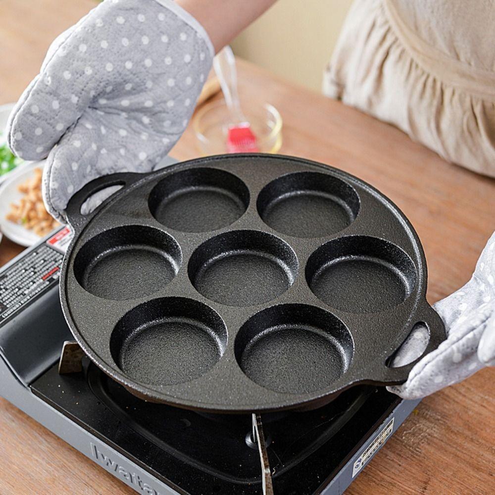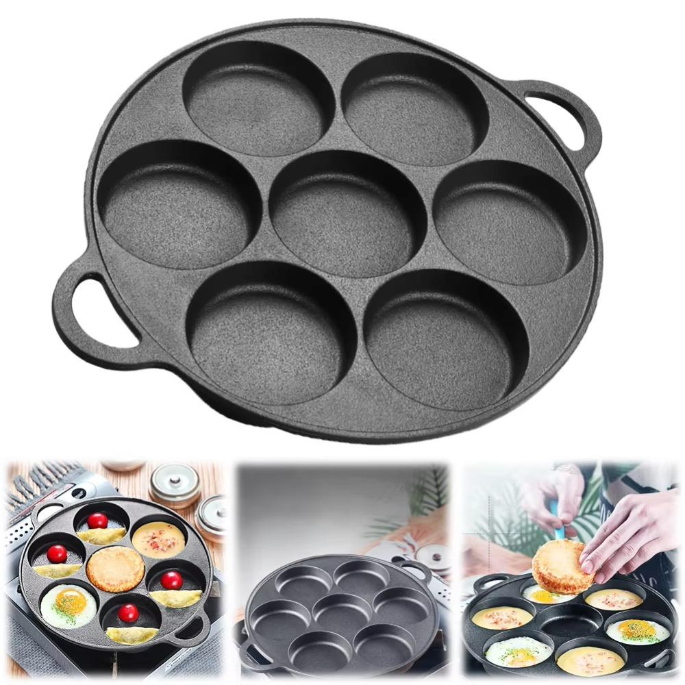 Эффективная 7-луночная сковорода для омлета Чугунная кухонная сковорода Многоцелевые сковороды для ветчины Мясной рулет
