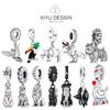 Серия животных, висячие серебряные 925 пробы, кролик, бордер-колли, попугай, шнауцер, бусины, подвески, подходят для оригинального браслета, ювелирные изделия