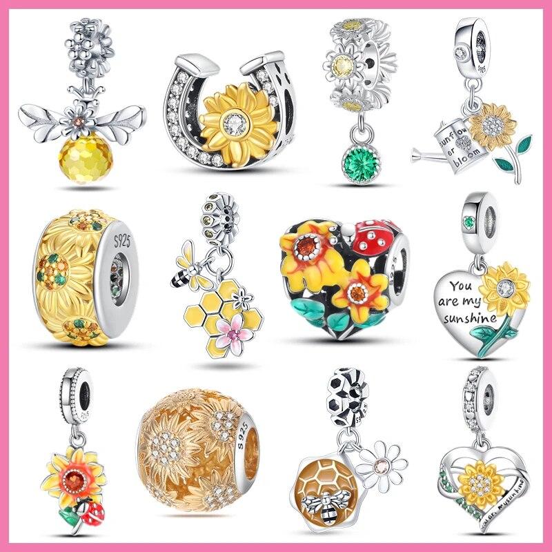 100% Стерлингового Серебра 925 Желтый Подсолнух Королева Пчела Подвески DIY Изготовление Ювелирных Изделий Лучший Подарок Для Женщин