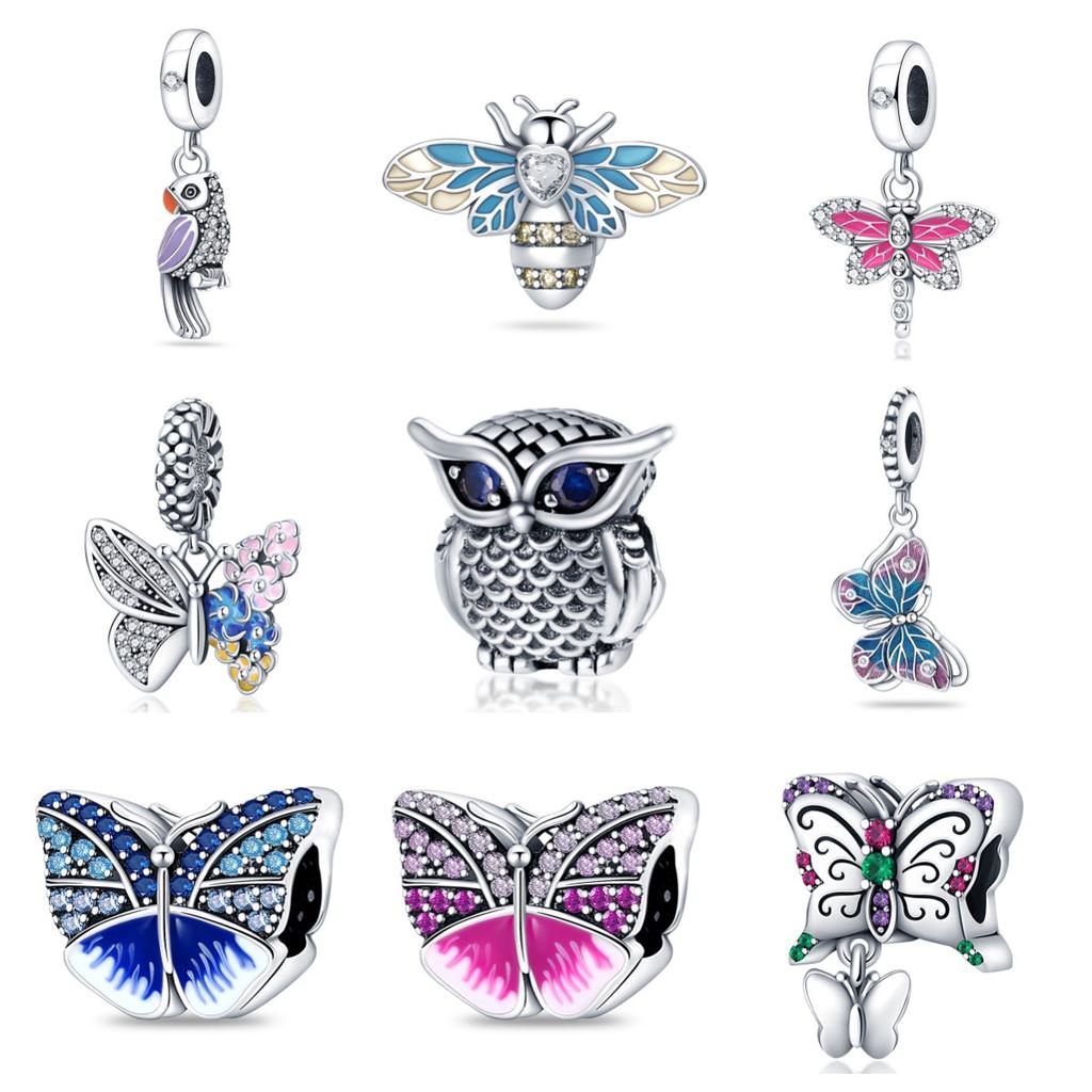 S925 Серебряная бабочка Стрекоза Пчела Сова Подвеска Бусины DIY Ювелирные аксессуары